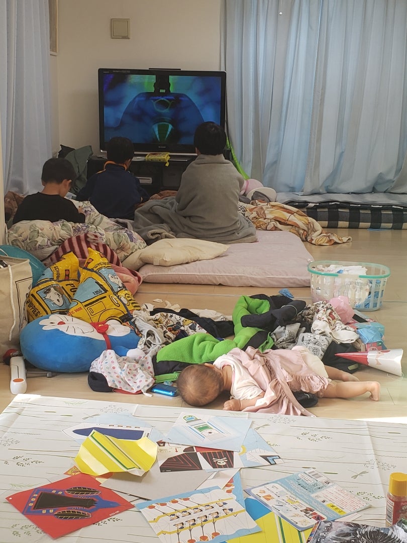 テレビに釘付けの息子たち。
