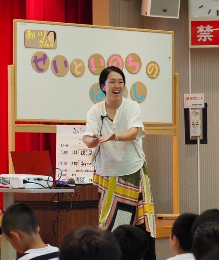 学校でも性教育が行われていますが、すべての学校に十分な性教育が行われているとはなかなか言えない現状もあります。従来の性教育は性と生殖についての内容には触れますが、人権、防犯、境界線、同意などの包括的性教育と言われる人権教育としてより広い視点でのお話をしています。